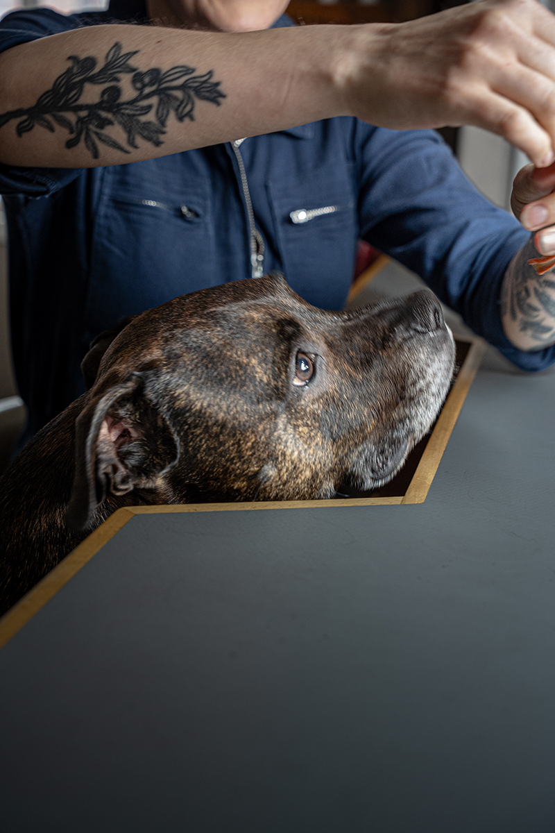 An RSPCA special, Archie is a very friendly Staffordshire Bull Terrier cross rescue dog and will be on site to give visitors a warm welcome to the Struthers workshop. When Archie isn’t busy meeting and greeting, he likes to spend his spare time sleeping, eating, swimming, learning new tricks and going for long walks in the woods.