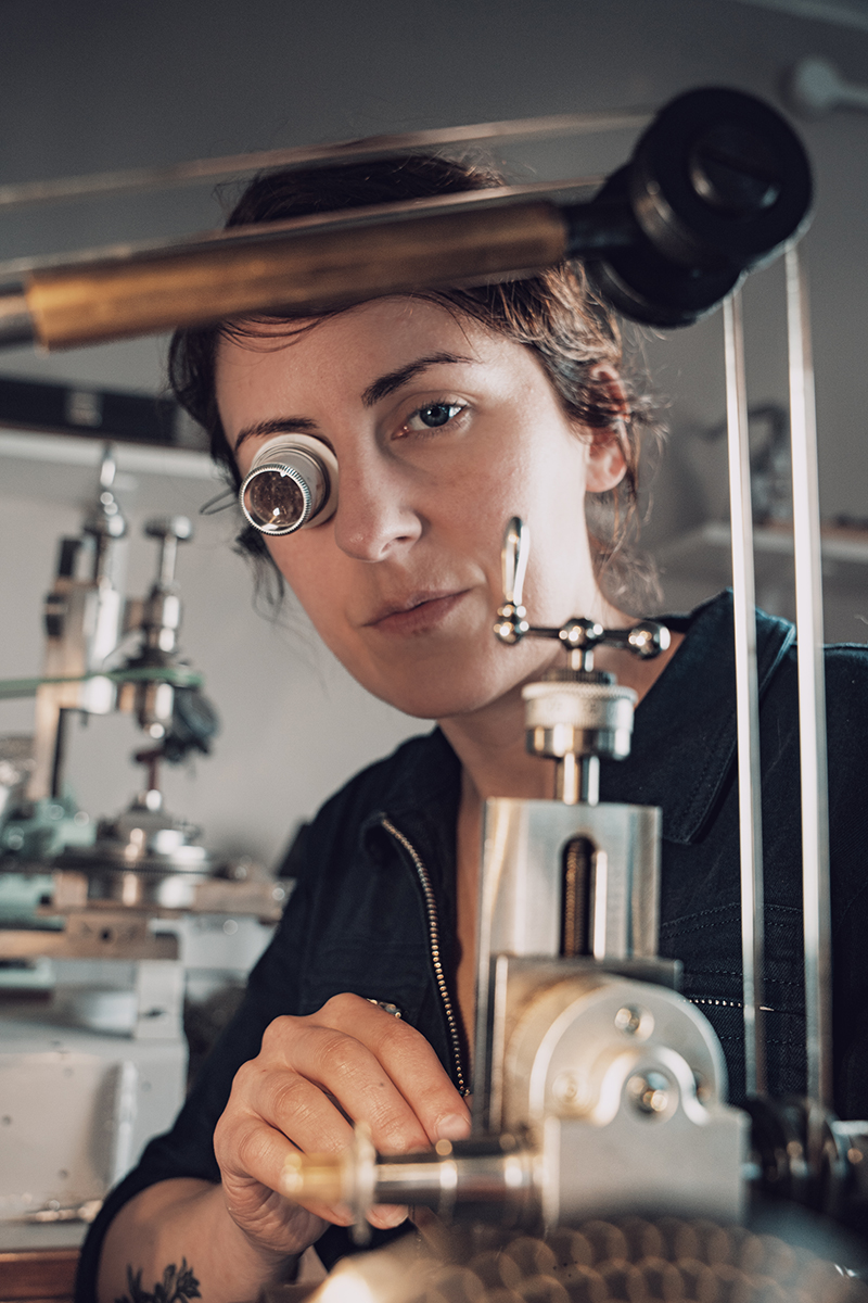 Born and raised in Birmingham, Rebecca was just 17 when she started her watchmaking journey. Initially training as a jeweller and silversmith with a passion for creating complex pieces of articulated jewellery; Rebecca soon found a way to combine her interest in making with her love of science in the pursuit of horology.