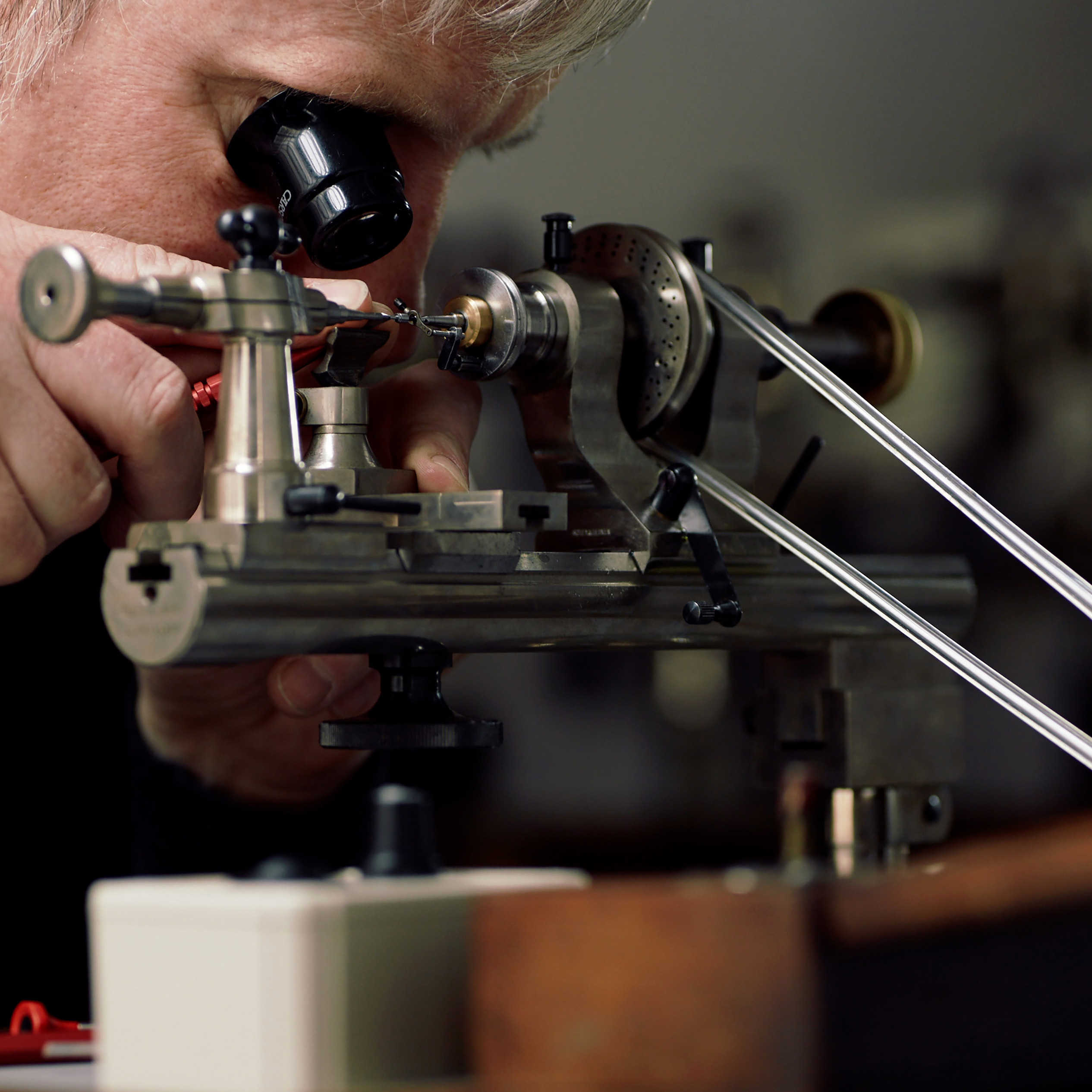 Craig and Rebecca are, and will always be, the watchmakers at the heart of every piece leaving their workshop. Inspired by the British horological industry of centuries gone by, and to achieve the perfect mix of traditional craft and modern precision, they proudly collaborate and have a network of exceptional independent artisans in the UK and around the world. This gives our clients access to highly specialist artistic crafts like engraving, enamelling and enamel micro-painting, rose engine turning, lapidary, and goldsmithing to help bring their vision to life.