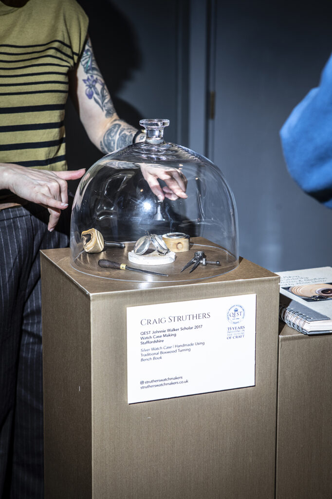 The image is of Craig sharing some of the hand tools we use when we’re making our watch cases, together with his scholarship piece which was designed to house an antique Agassiz calibre.