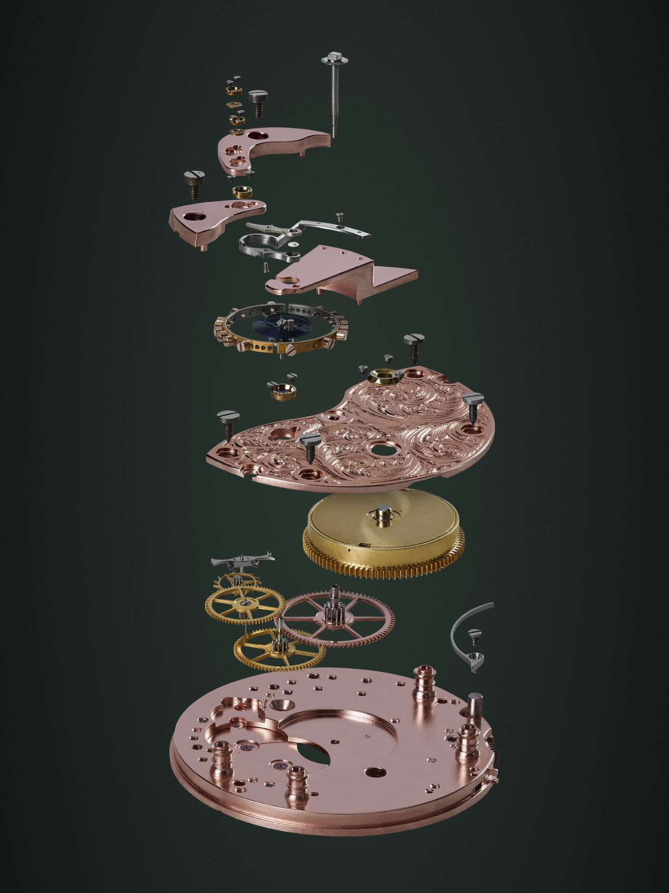 a late-nineteenth-century English manual wind calibre, carefully selected and stripped back to basics. Refinements include parachute shock setting with diamond endstone, free sprung balance, and traditional hand engraved acanthus leaf scrolling