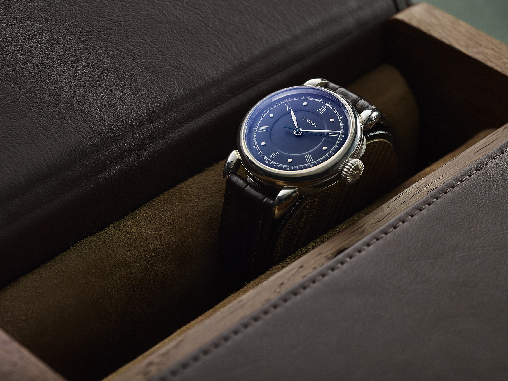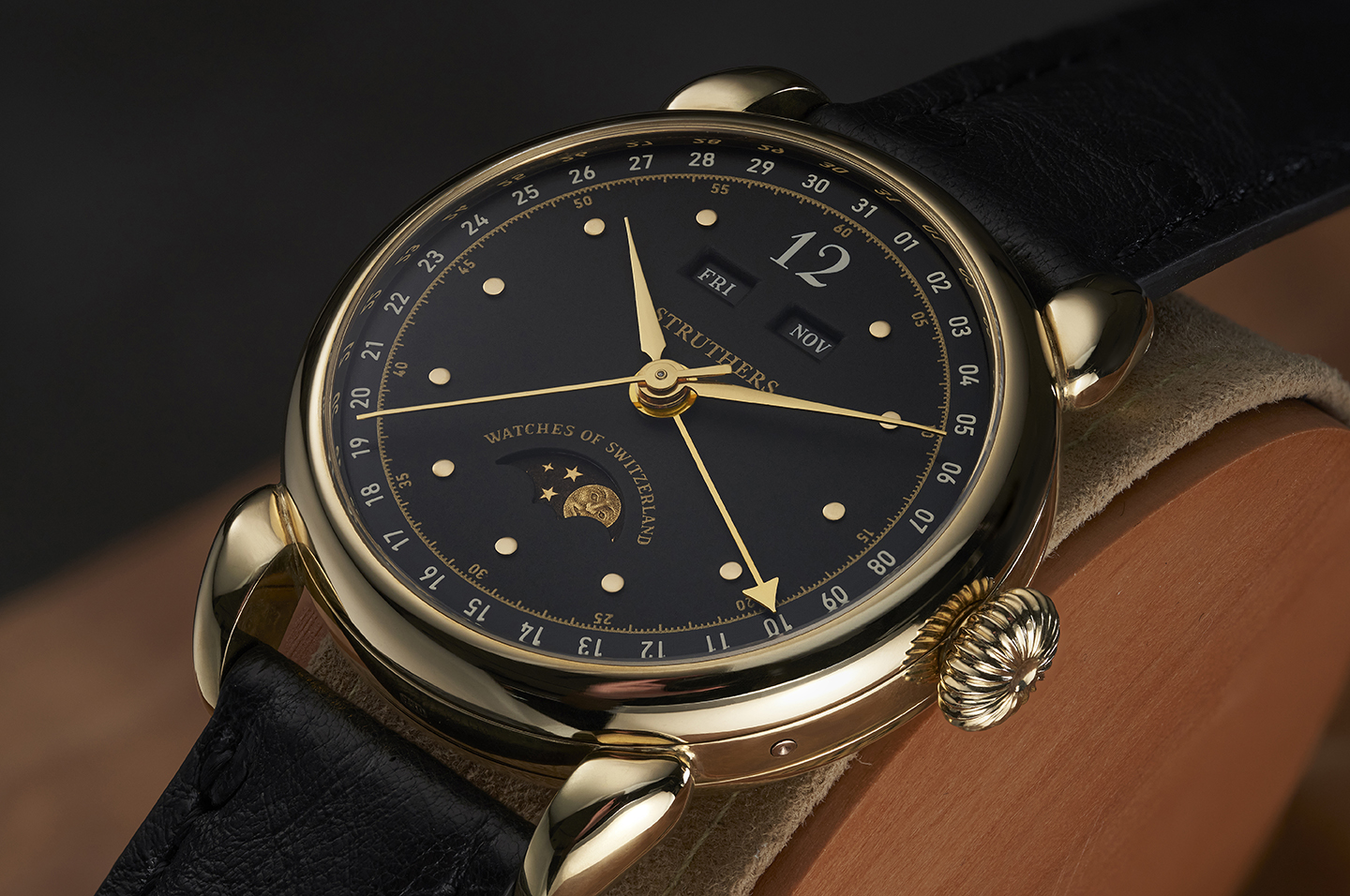 an option of either 36mm or 38mm and available in your choice of 18ct rose, yellow or white gold. The Struthers use centuries-old box wood turning and soldering techniques to craft every watch case
