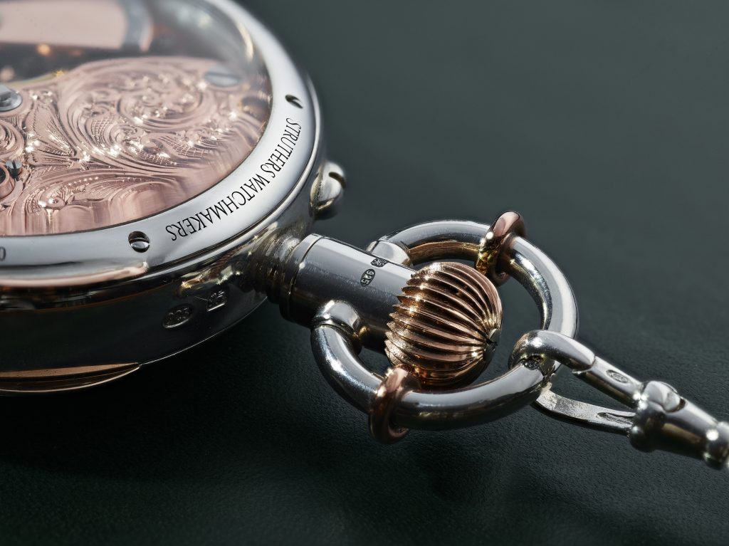 Clients are kept up to date with images from the bench throughout the process and are invited to visit the Struthers’ Jewellery Quarter workshops and studio to see their watch being made.